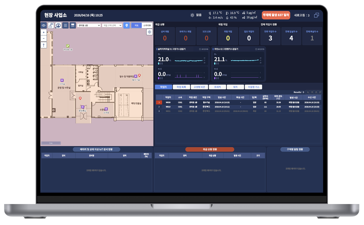실시간으로 작업자의 작업 위험 여부를 확인하며, 사고 예방 및 대응에 관련한 문서를 작성합니다.